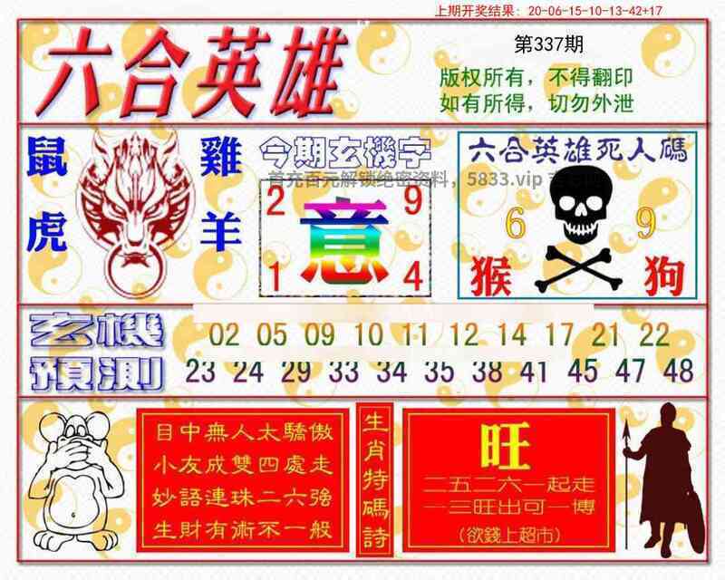 337期:天地两肖【地肖+龙猴】开鸡09准 |